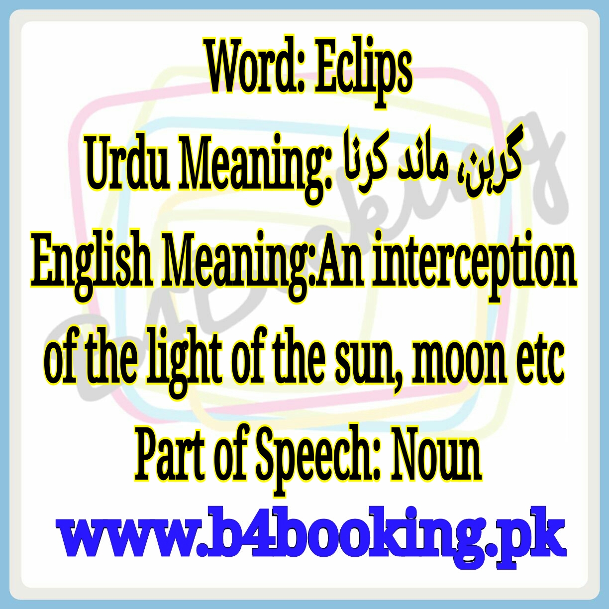 Eclips Meaning In English and Urdu Eclips Pronounciation