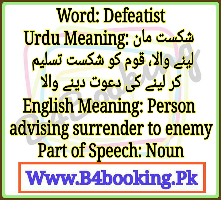 Defeatist Meaning In Urdu and English Defeatist Pronunciation