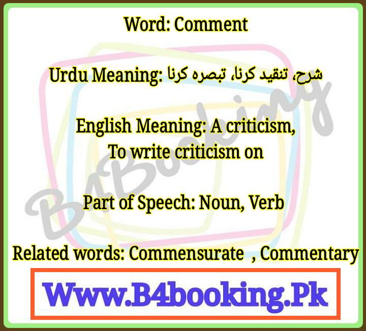 Comment Meaning In Urdu and English It's Pronounciation