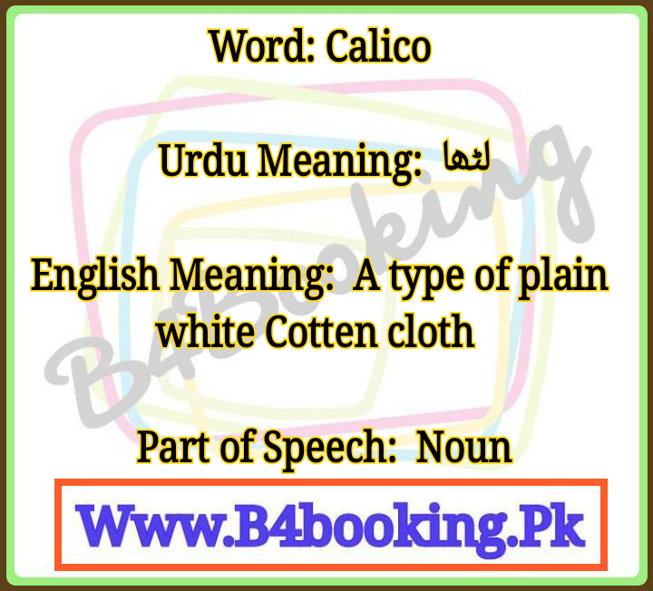 Calico Meaning In Urdu and English It's Pronounciation