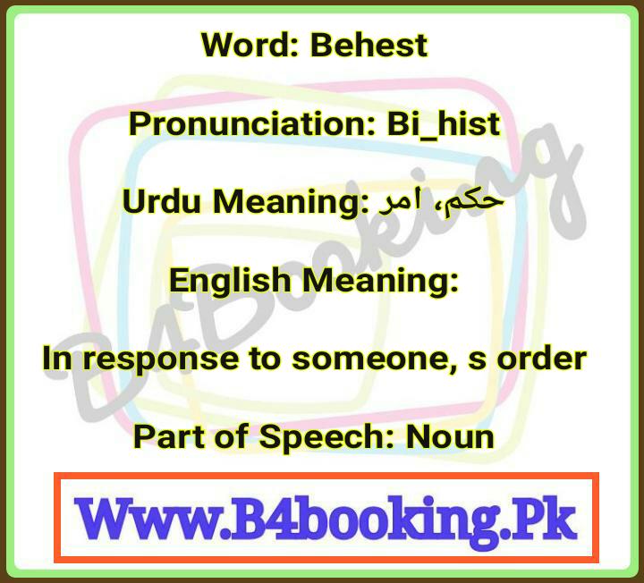 Behest Meaning In Urdu and English and it's Pronunciation