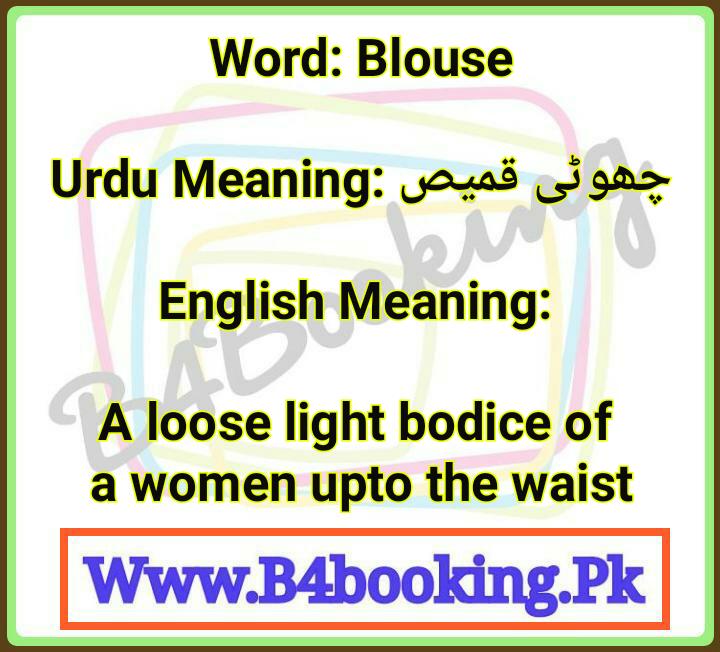 Blouse Meanings In English and In Urdu its Pronunciation