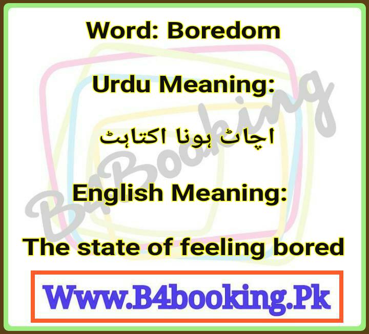 Boredom Meanings In English and In Urdu its Pronunciation